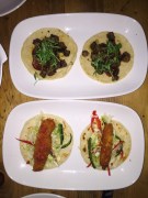 fried chicken and steak tacos.